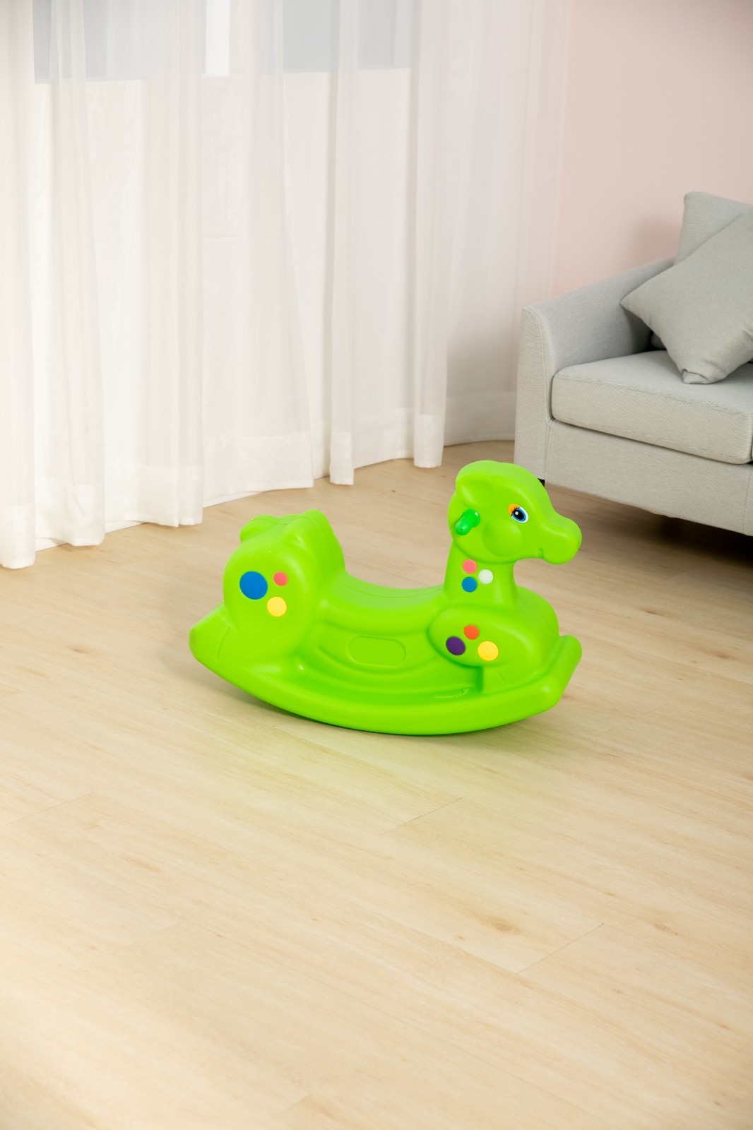 - Asiento amplio y estable que ofrece comodidad y firmeza.- Movimiento de vaivén realista que simula el galope de un caballito