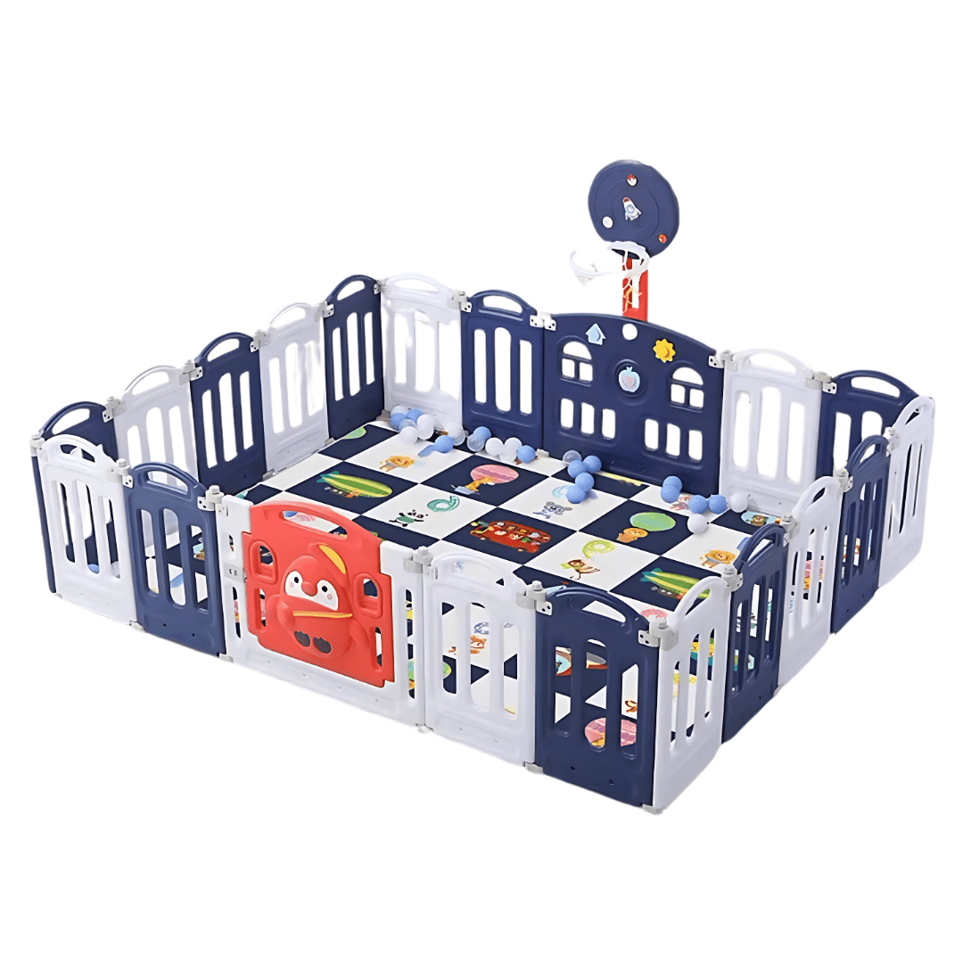 Fabricado con materiales resistentes, estables y de bordes redondeados, brinda total seguridad y comodidad durante el juego. Su gran tamaño lo convierte en una opción perfecta para familias que buscan un corral espacioso y multifuncional, ideal para interiores o exteriores.